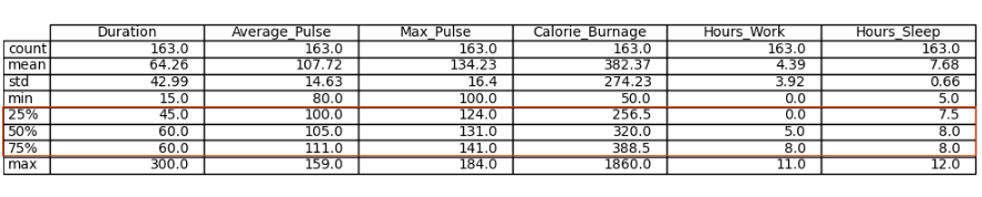 - The 25% percentile of Average_Pulse means that 25% of all of the training sessions have an average pulse of 100 beats per minute or lower. If we flip the statement, it means that 75% of all of the training sessions have an average pulse of 100 beats per minute or higher