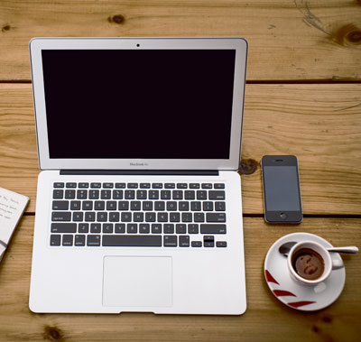 Try to click on the computer, phone, or the cup of coffee in the image below: